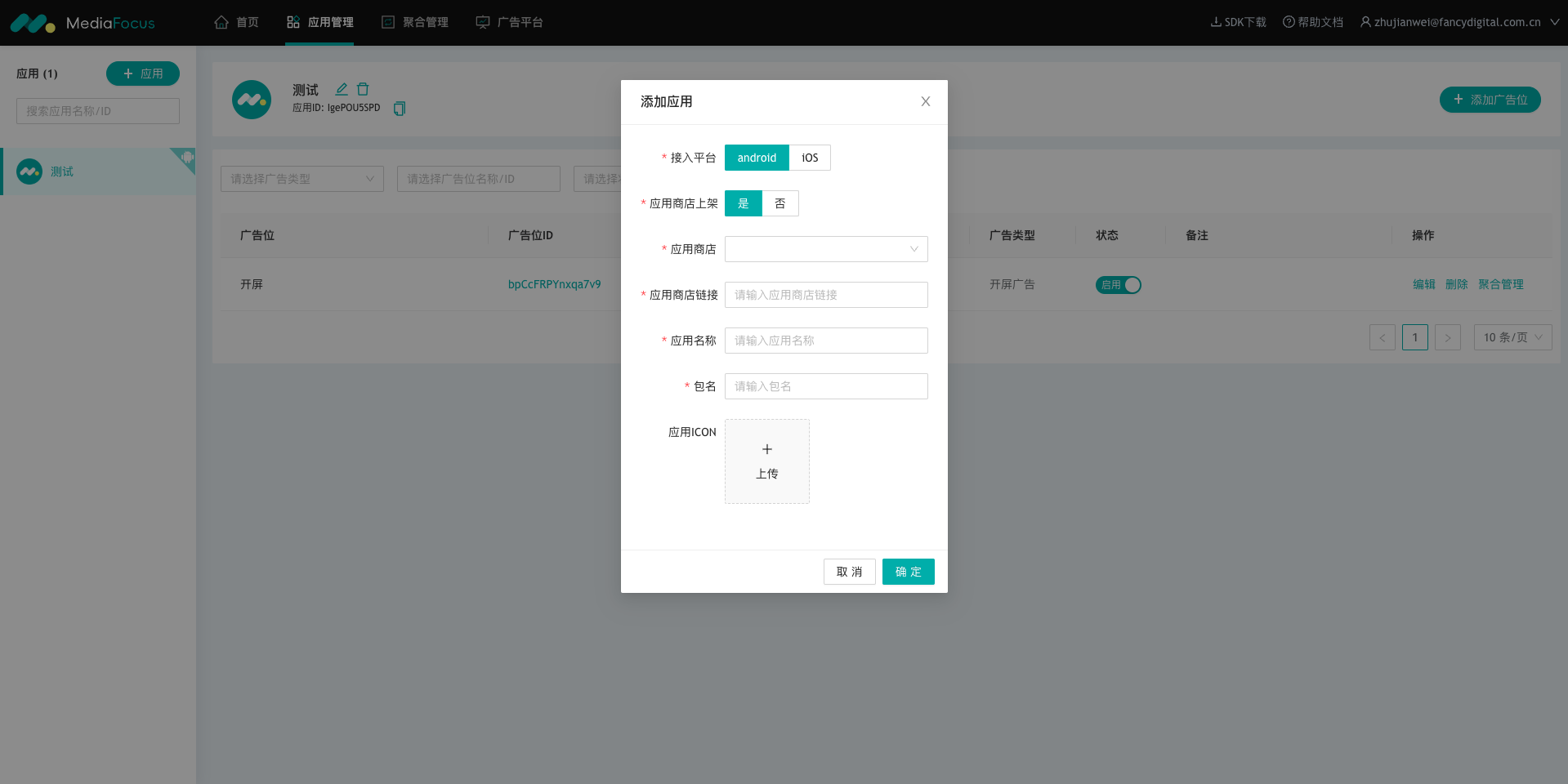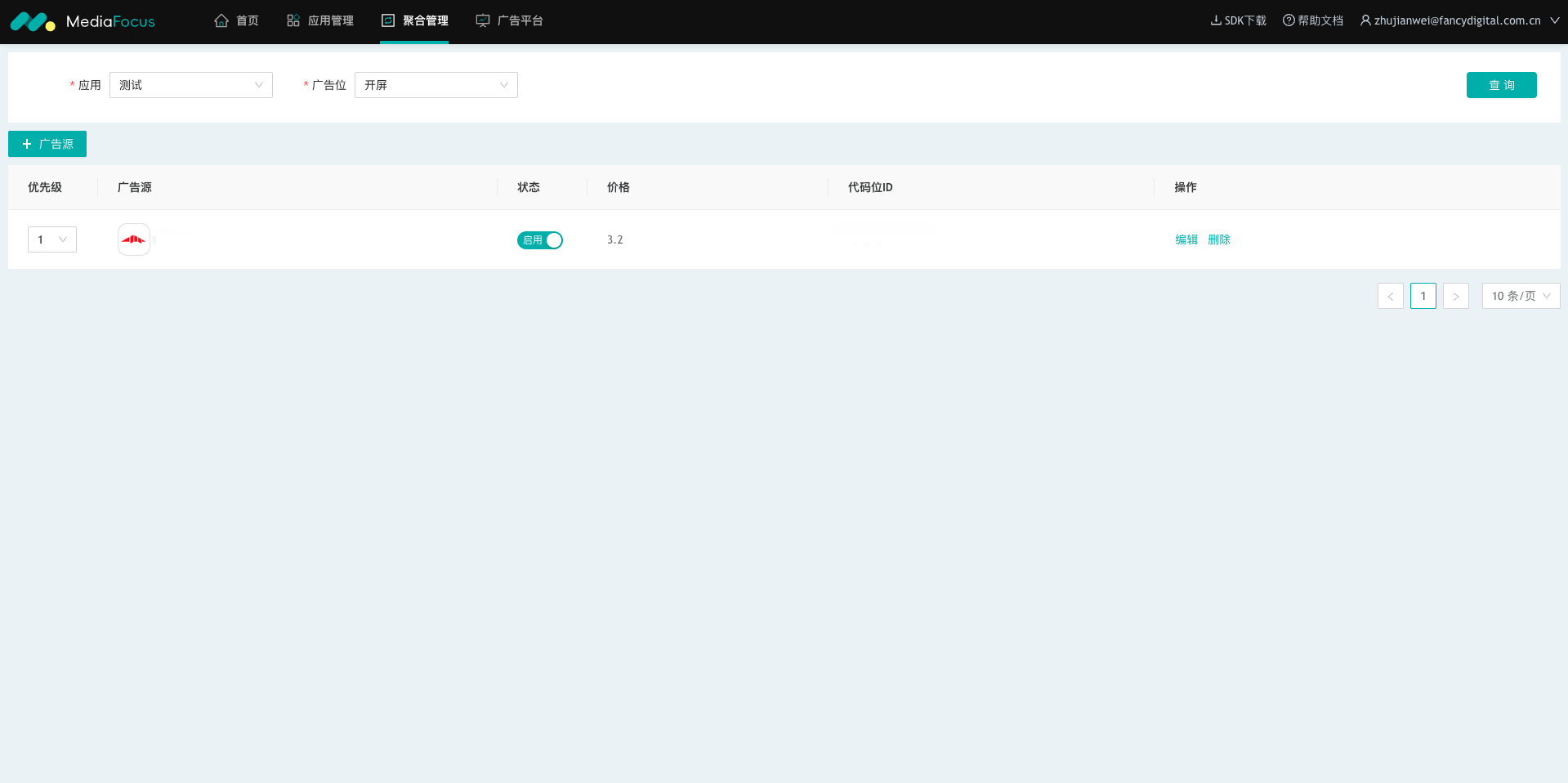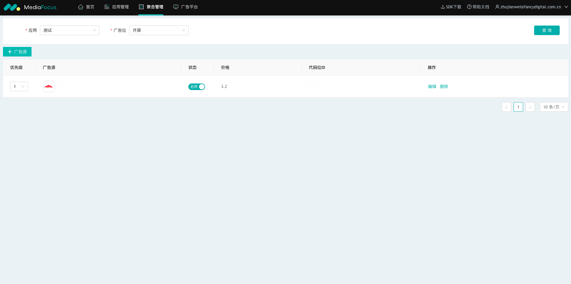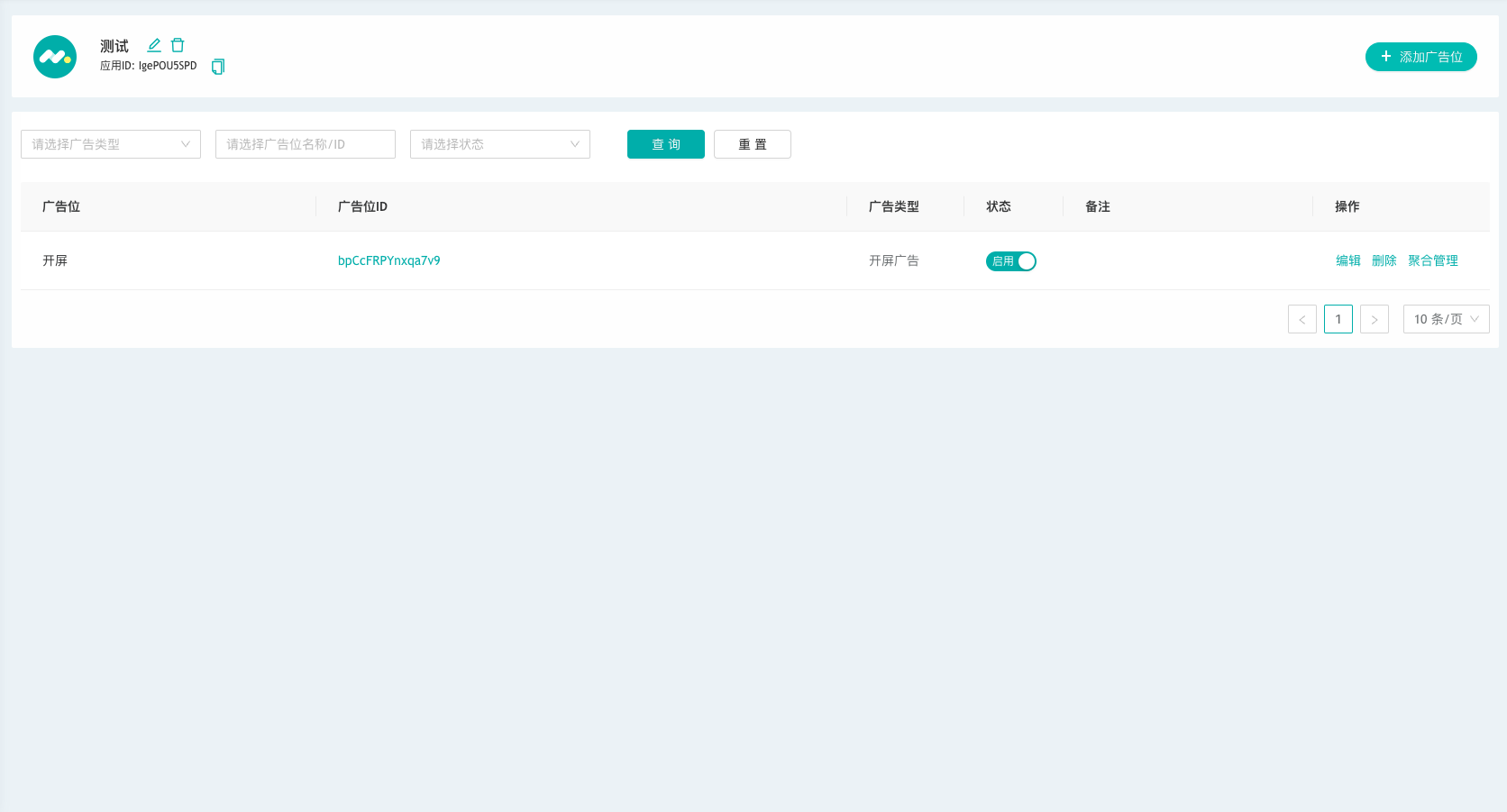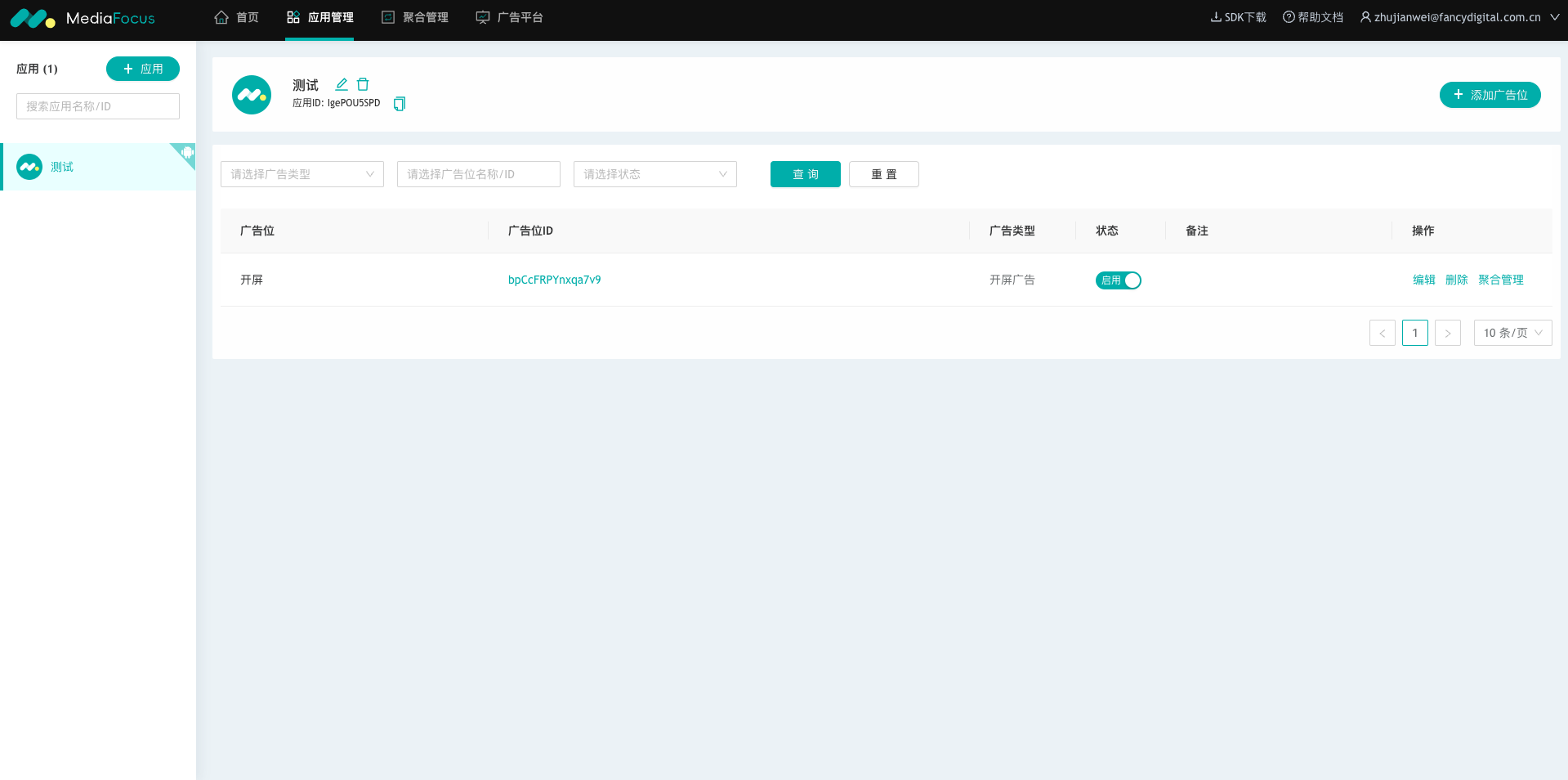 可在【应用管理】页面右侧的广告位列表中查看已添加的广告位。如图: