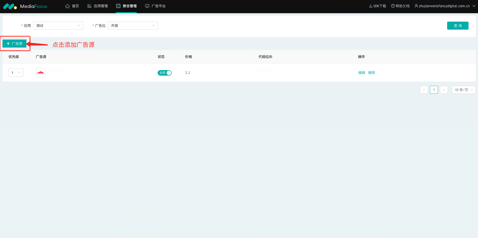 a. 点击广告位右侧【添加广告源】按钮。