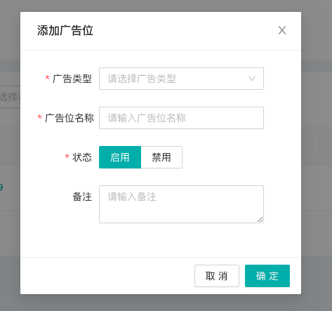 2)在弹出的弹框中依次填写广告位相关信息:
