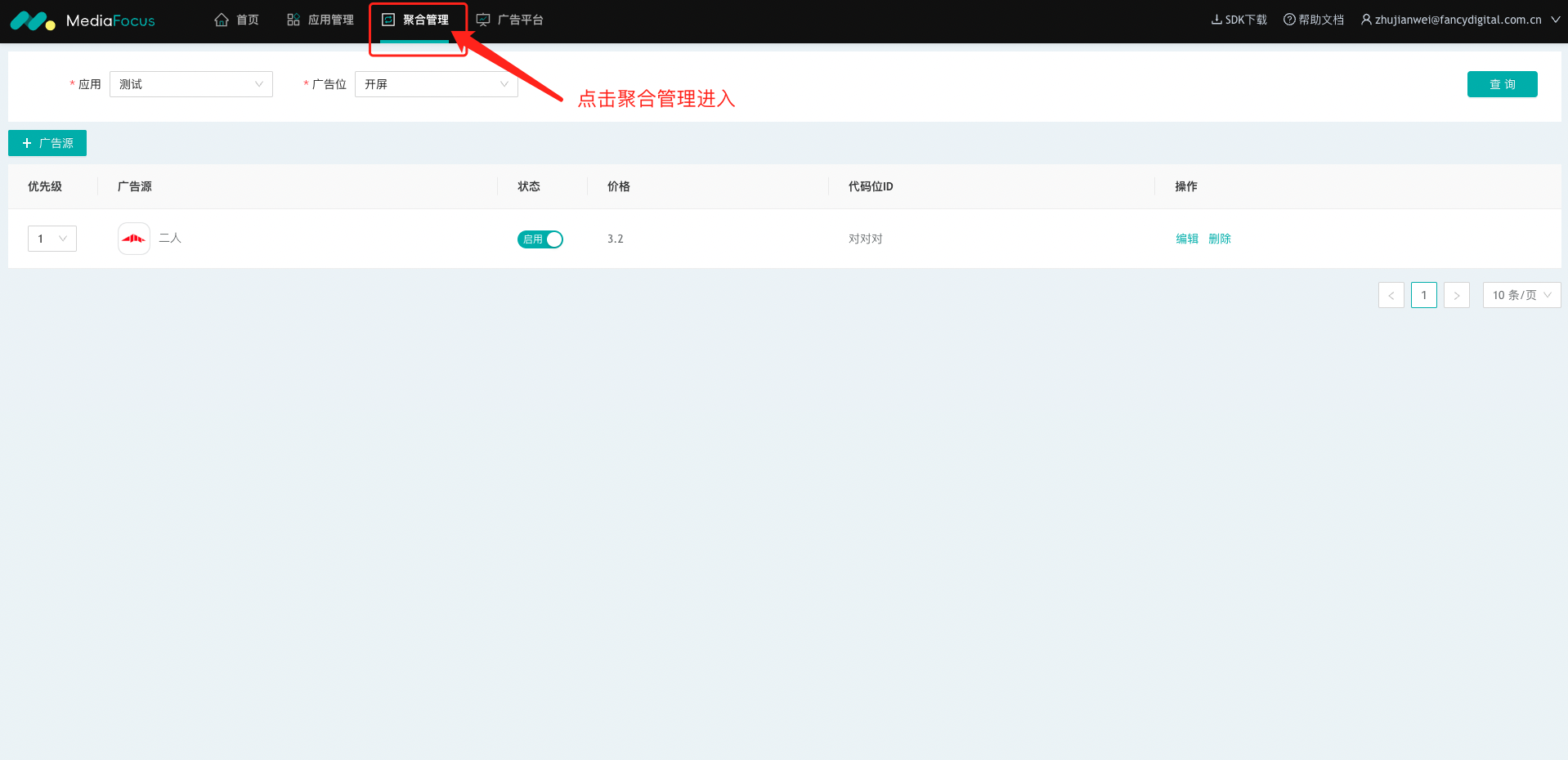 欢迎使用MediaFocus聚合平台! 以下内容主要介绍 MediaFocus 聚合平台使用流程,帮助您快速了解并完成 MediaFocus 聚合平台基础配置。仅需 8 个步骤,即可快速开始聚合广告变现之旅! 1.注册 MediaFocus 账号 2.添加应用 3.添加广告位 4.添加广告源 5.配置瀑布流 6.下载、集成 MediaFocus SDK 7.集成测试 8.数据分析及效果优化